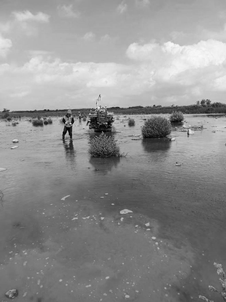 近日,因连续暴雨,总局江苏局徐州工勘院施工的盐城化工生态园区调查项目现场出现大面积积水,设备行进困难。该院现场成立党员突击队,严格按照安全规程中涉水作业规定开展工作,同时开动项目备用抽水设备,为园区排水贡献力量。