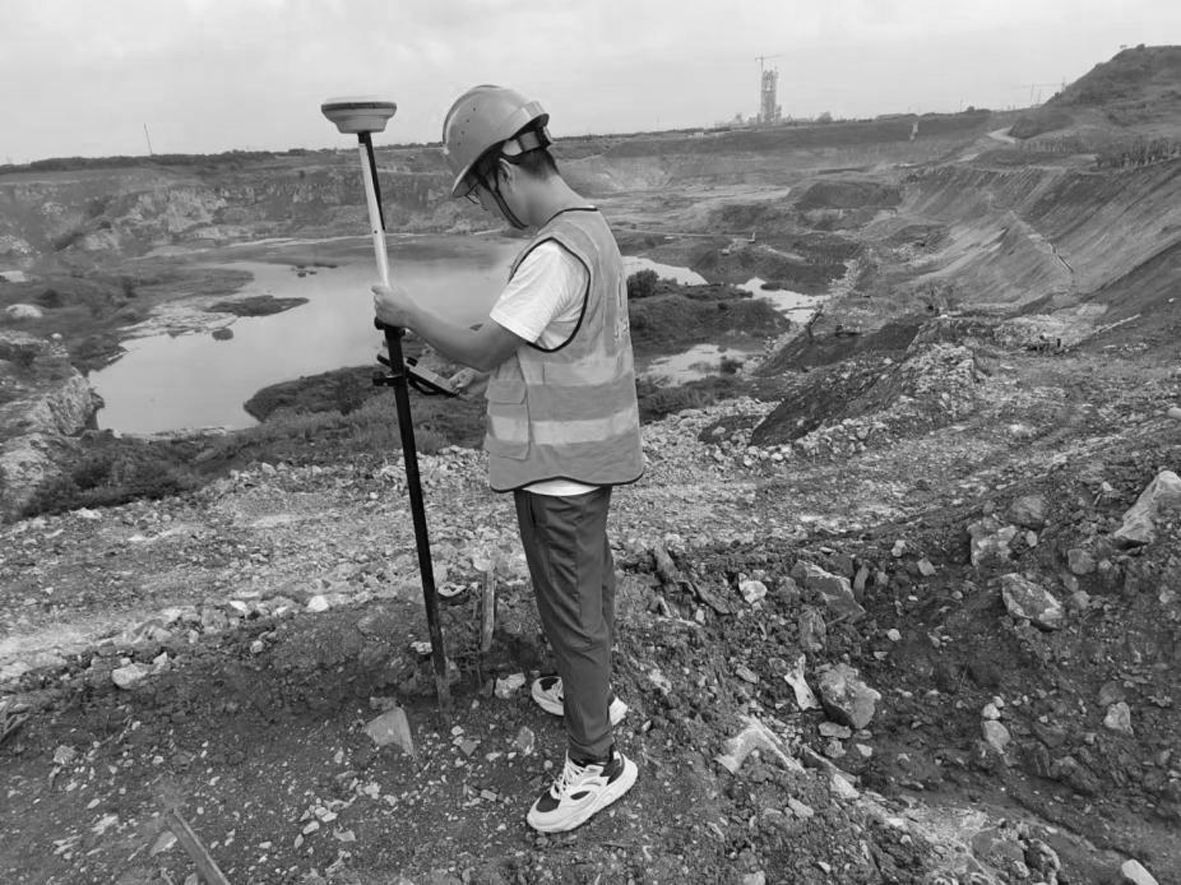 总局江苏局长江环境公司赵宁克服高温天气影响,在宜兴市阳港矿业有限公司金峰山边坡生态修复施工工程中进行边坡高程复核测量。该工程旨在加快矿山地质环境恢复与综合治理,改善周边生态环境与人居环境。