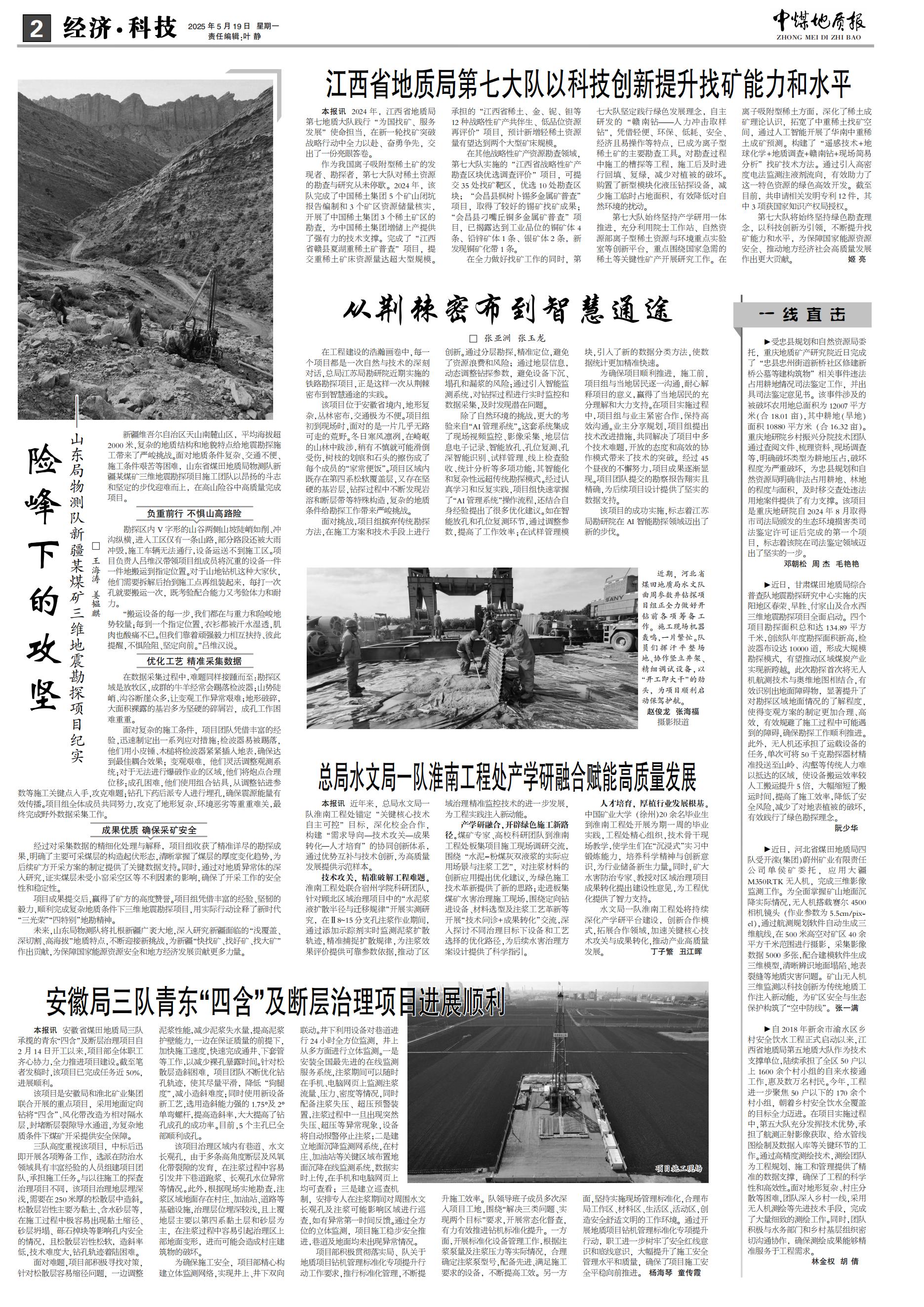 近日,甘肃煤田地质局综合普查队地震勘探研究中心实施的庆阳地区春荣、早胜、付家山及合水西三维地震勘探项目全面启动。四个项目勘探面积总和达134.89平方千米,创该队年度勘探面积新高,检波器布设达10000道,形成大规模勘探模式,有望推动区域煤炭产业实现新跨越。此次勘探首次将无人机航测技术与奥维地图相结合,有效识别出地面障碍物,显著提升了对勘探区域地面情况的了解程度,使得变观方案的制定更加合理、高效,有效规避了施工过程中可能遇到的障碍,确保勘探工作顺利推进。此外,无人机还承担了运载设备的任务,单次可将50千克勘探器材精准投送至山岭、沟壑等传统人力难以抵达的区域,使设备搬运效率较人工搬运提升5倍,大幅缩短了搬运时间,提高了施工效率,降低了安全风险,减少了对地表植被的破坏,有效践行了绿色勘探理念。